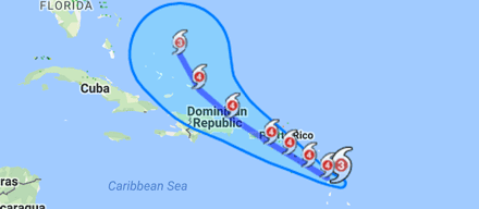 Prayers to everyone in her path, Maria is expected to make landfall in eastern Puerto Rico and continue its passage through the Greater Antilles, in the realm of possibility, direct impact in northern Haiti. The threat level of Yellow was issued at 9 AM, Monday morning, while the storm was still a category 2.