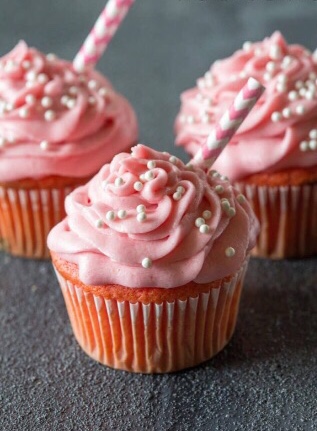 Not only do these Strawberry Milkshake Cupcakes take you back to being a kid, the vanilla cake makes the perfect partner to the dreamy strawberry frosting. Best of all, you could easily tweak this recipe if you are more of a chocolate strawberry lover, by using chocolate cake!!!!